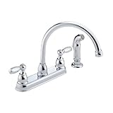 The simple elegance and curves of the Peerless P99575 is a perfect complement to any home. This faucet comes in Polished Chrome finish and double handles for ease of use. Features include a high arc swivel spout and matching side spray. Read more